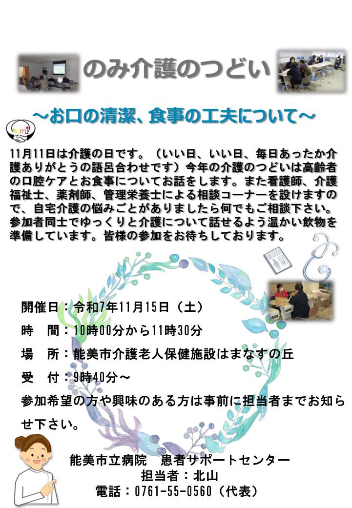 今年で5回目となる「のみ介護のつどい」を開催します✨